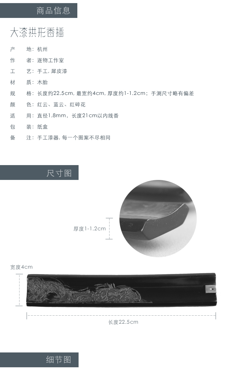 逐物漆器 直板拱形香插 大漆線香插 沉香檀香插香爐 文創收藏禮品1入