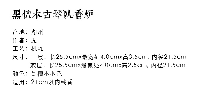 黑檀木古琴臥香爐 紫光檀伏羲古琴線香爐 整料木香爐 沉香檀香爐1入