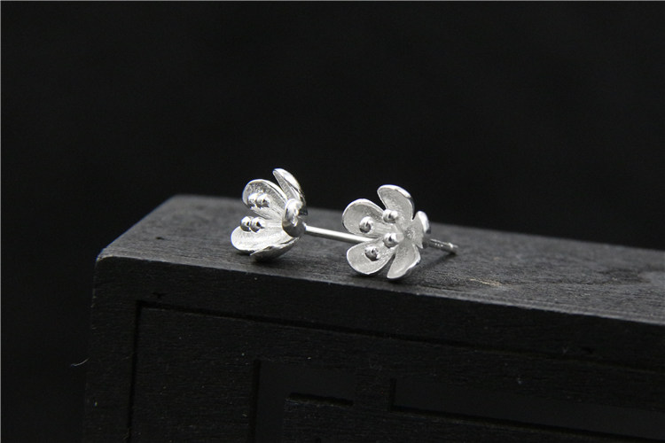銀琪銀飾 素銀S925韓國可愛氣質小花耳釘 耳飾 送閨蜜禮物1入