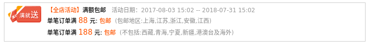 單筆訂單滿 188 元: 包郵 (不包括:西藏,寧夏,新疆,港澳臺及海外)