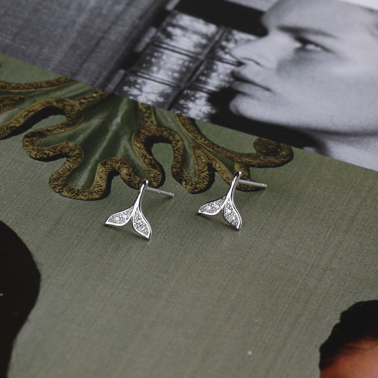 韓國小巧迷你款魚尾S925通體純銀耳釘睡覺不用摘耳環女氣質簡約1入
