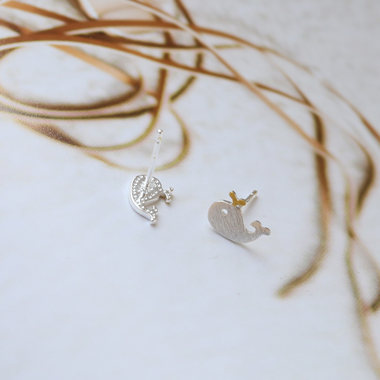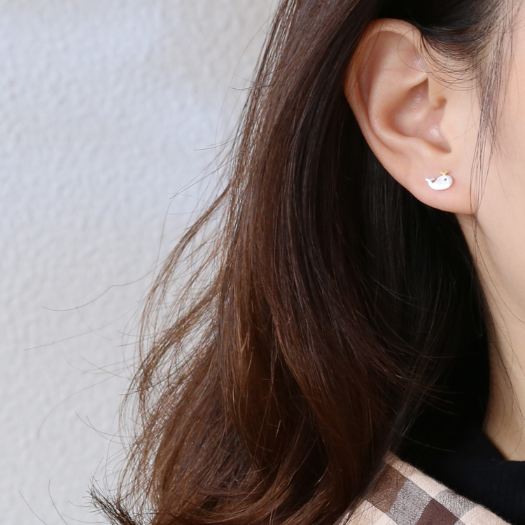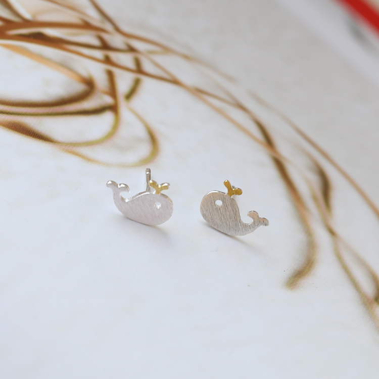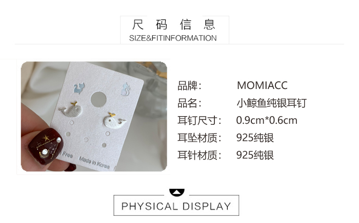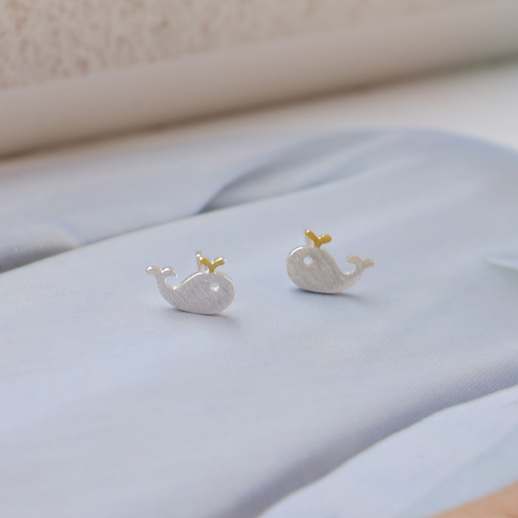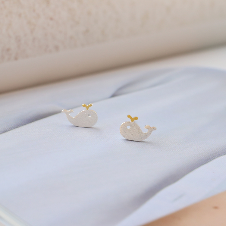 迷你小巧氣質簡約甜美小鯨魚s925通體純銀耳釘女睡覺不用摘的耳釘1入