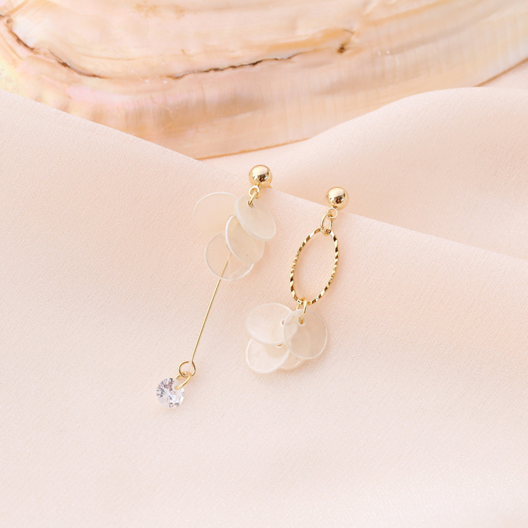 韓國名媛風925銀針耳環貝殼片耳墜優雅修飾臉型感顯臉瘦耳飾耳釘1入