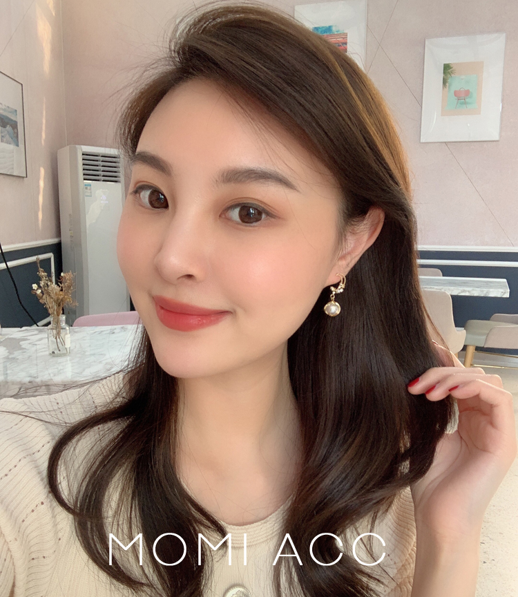 韓國925銀針甜美網紅月亮耳釘珍珠耳墜小清新925銀針耳環氣質簡約1入