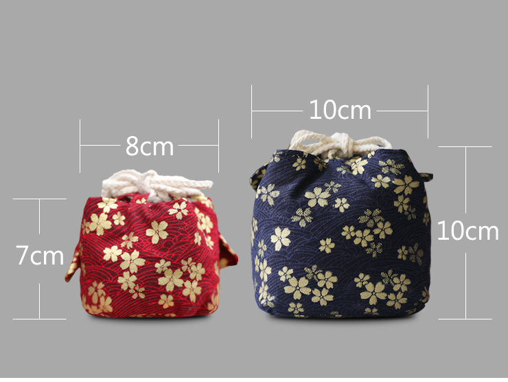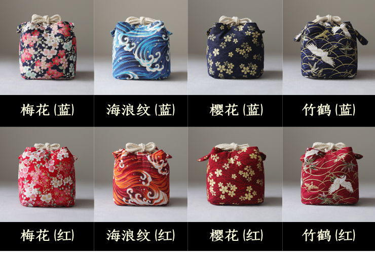 本款中號包2個起包郵,小包3個起包郵,中小包各1個起包郵。共有八種顏色可以選擇。有中號,小號兩種尺寸。中的高10cm,底部長和寬為10cm,可裝茶壺、公道杯、茶葉罐等稍大物件,小的高7cm,底部直徑8cm,可裝茶杯茶寵等小物件。購買前請核對好尺寸。大包是方底,小包是圓底。中號包↓小號包↓中號布包可裝茶壺、公道杯、茶葉罐等稍大物件。小號布包可裝茶杯茶寵等小物件。布包細節↓櫻花↓梅花↓竹鶴↓海浪紋↓