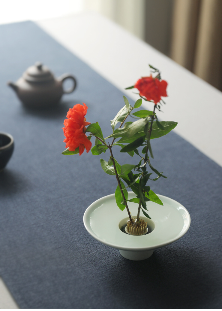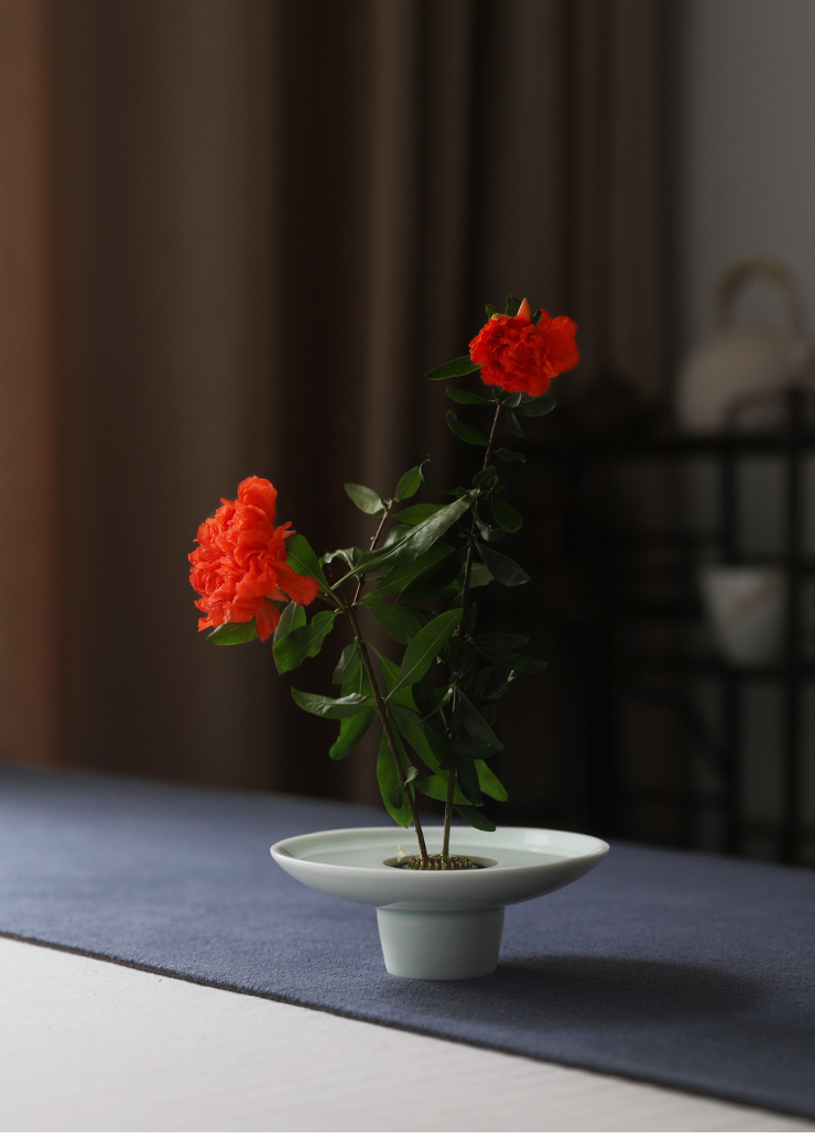 春泥手工陶瓷青釉花盆日式藝術插花禪意花插茶室會所花道高腳花器1入