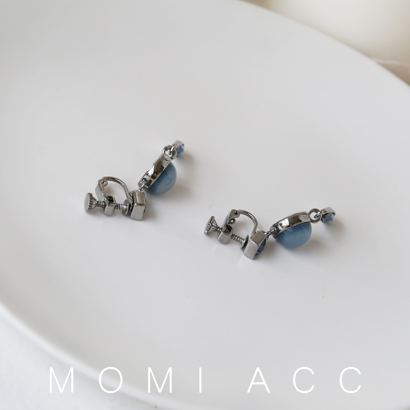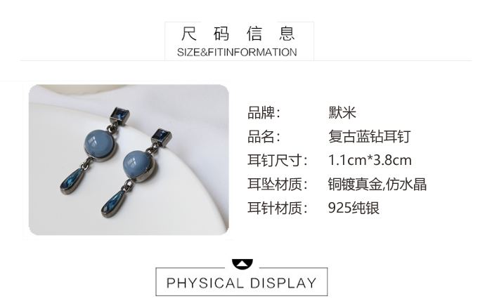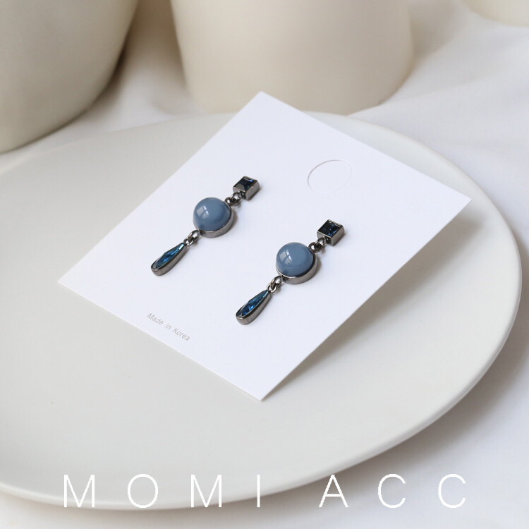 韓國925銀針耳釘小眾復古蛋白亞克力水滴亮鉆優雅耳環氣質簡約1入