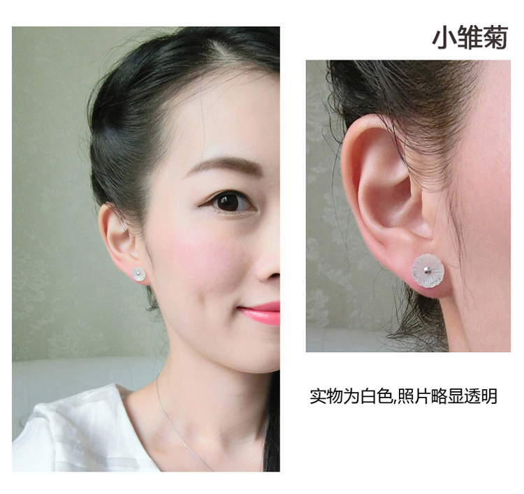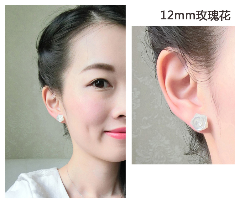 韓國天然貝殼玫瑰花S925純銀耳釘耳飾耳環女簡約氣質防過敏1入