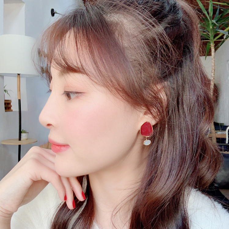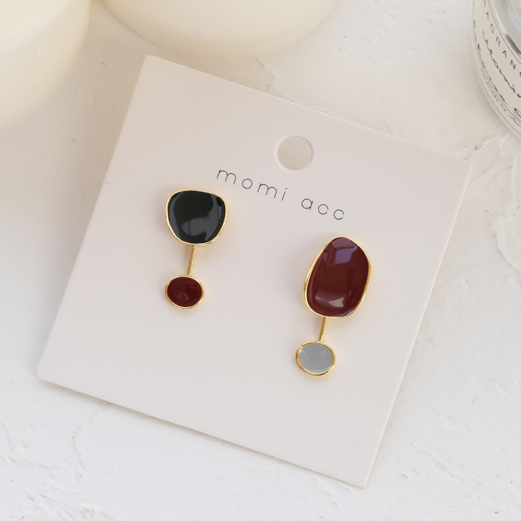 韓國東大門橢圓烤漆鑲邊氣質女精致耳墜設計撞色925銀針耳釘耳環1入