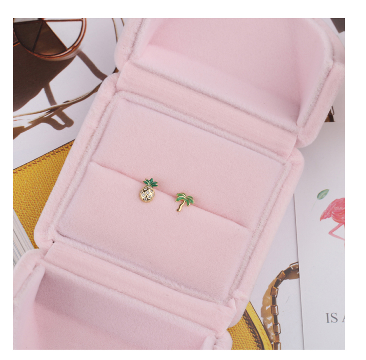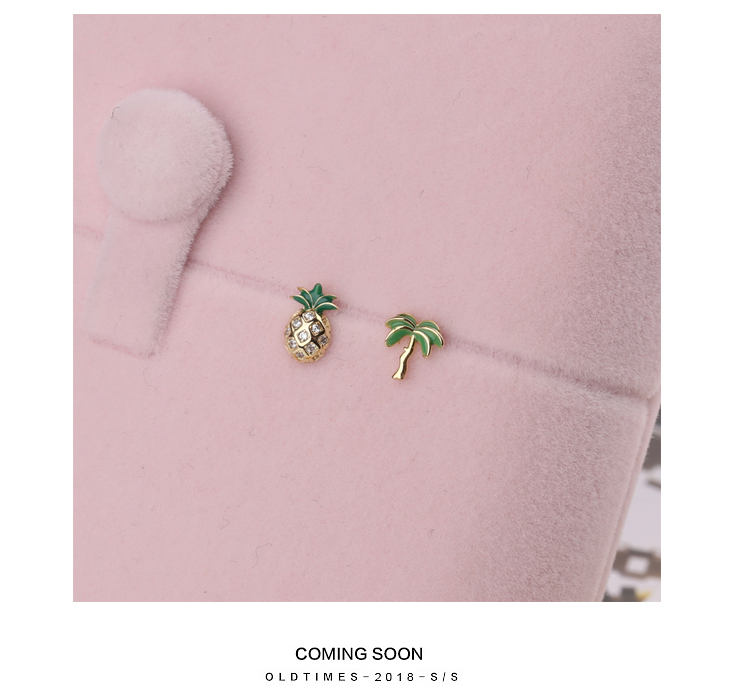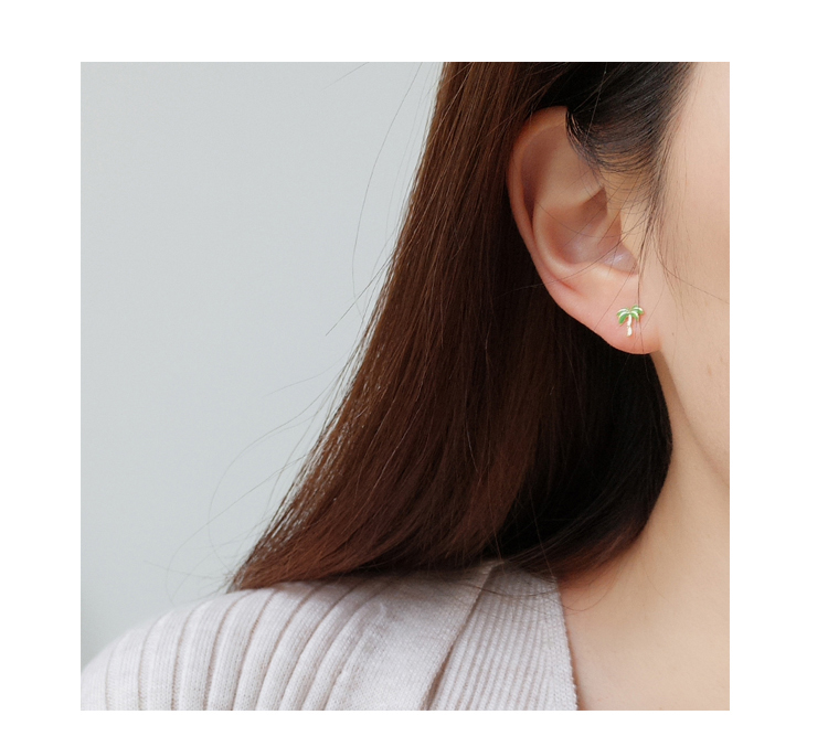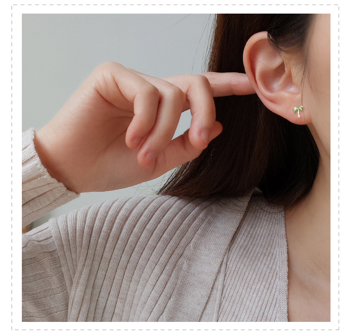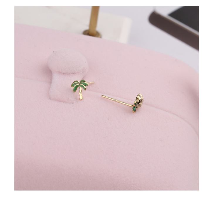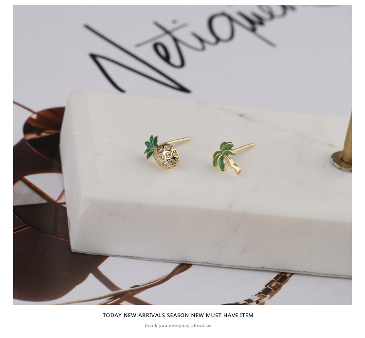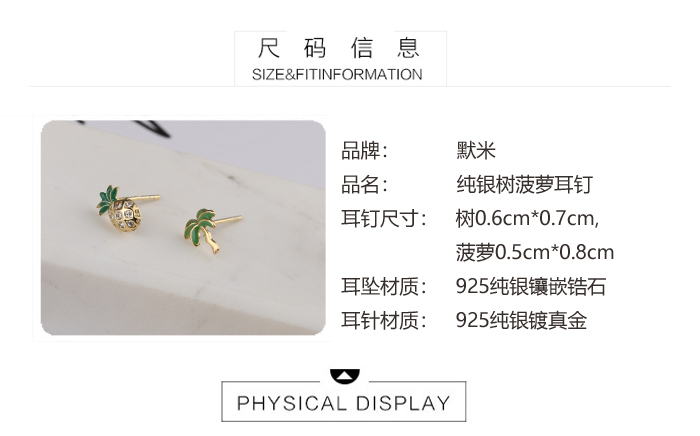 通體925純銀菠蘿椰子樹迷你小耳釘女 日韓氣質百搭學生飾品耳飾1入