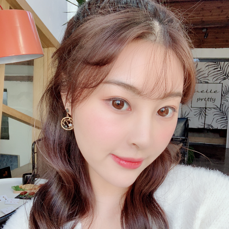 韓國新品 捕夢網簡約寶石耳環女百搭設計師款耳墜925銀針耳釘氣質1入