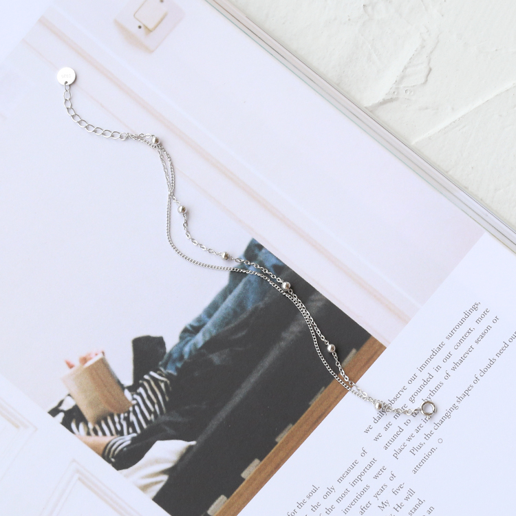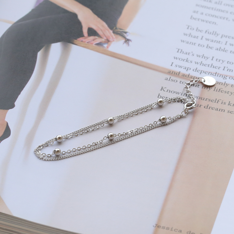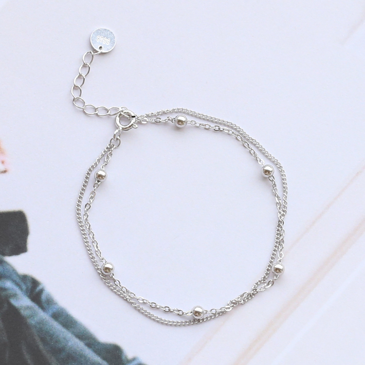 韓國雙層手鏈S925純銀迷你銀珠圓球細款手串潮流配飾禮物閨蜜女款1入