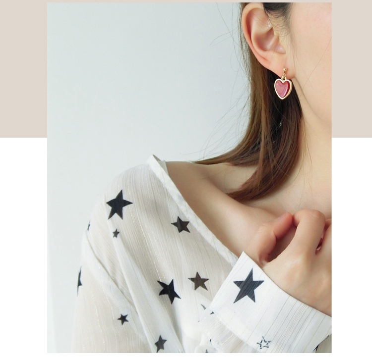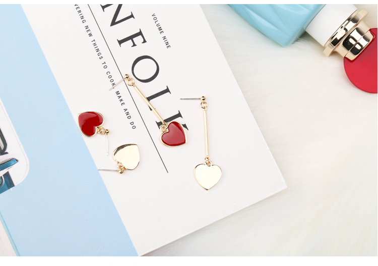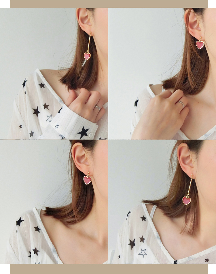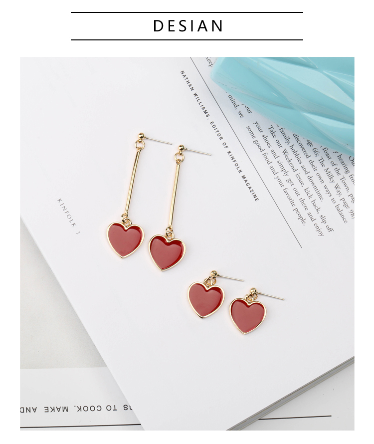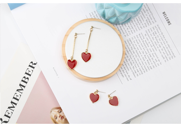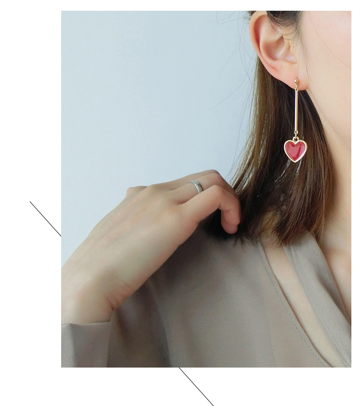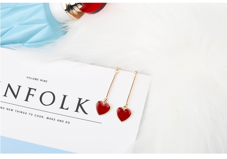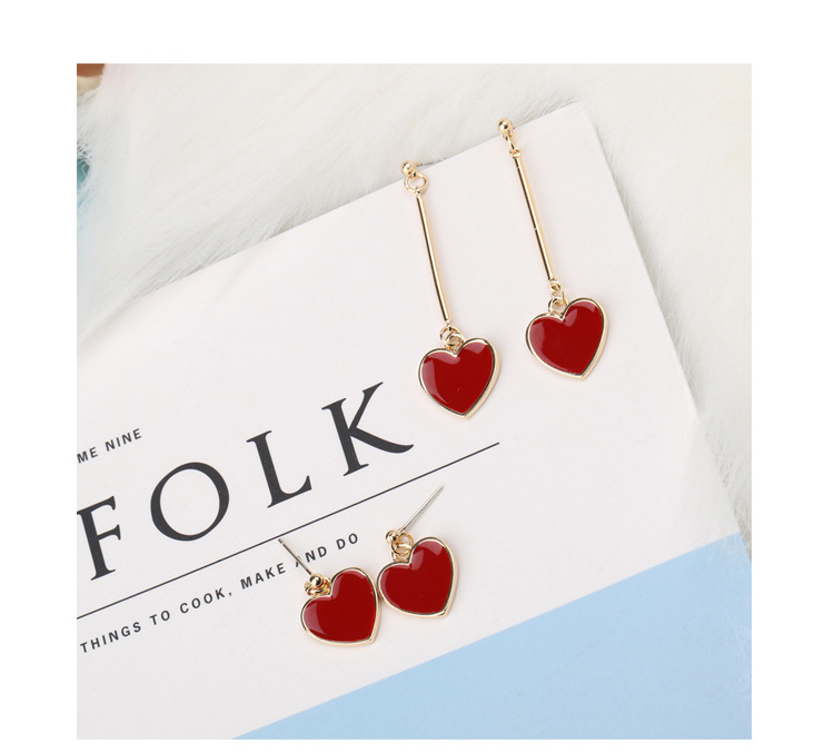 韓國 甜美紅色愛心耳環s925純銀針耳釘女防過敏吊墜簡約長款氣質1入