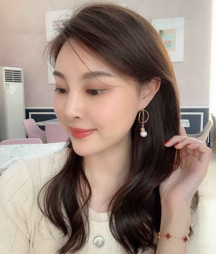 韓國 簡約百搭925銀針珍珠氣質不對稱女耳環韓國氣質 網紅顯臉瘦1入