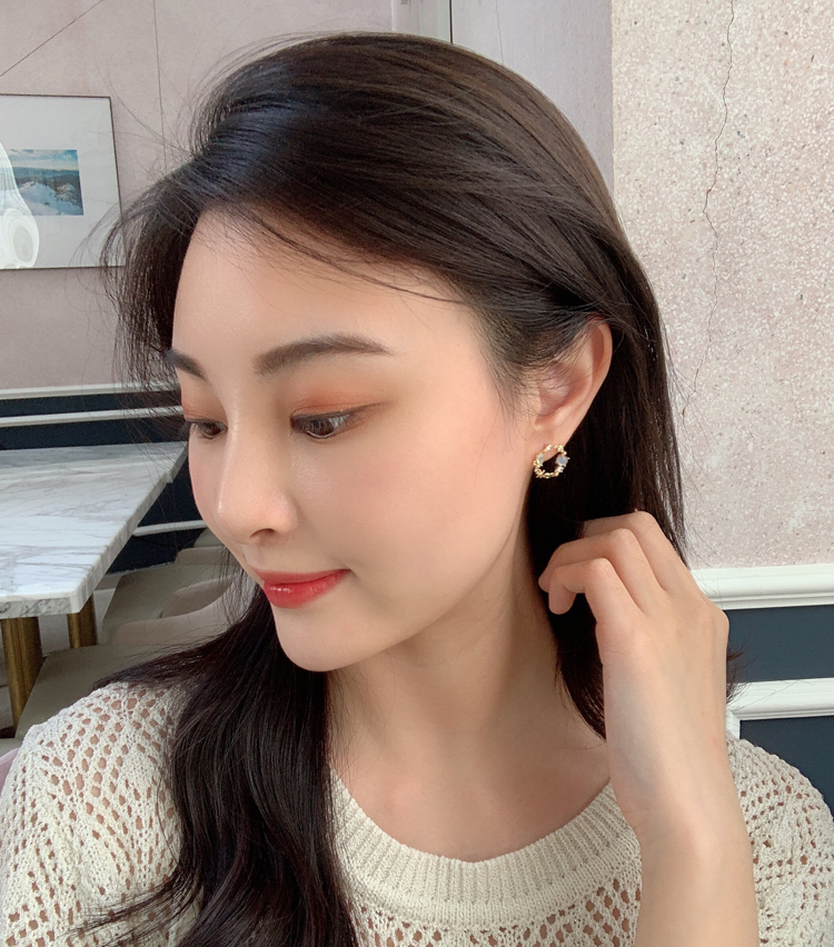 韓國東大門925銀針耳釘鏤空圓形夢幻耳環設計感簡約氣質耳飾1入