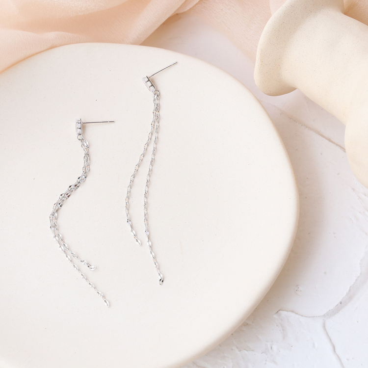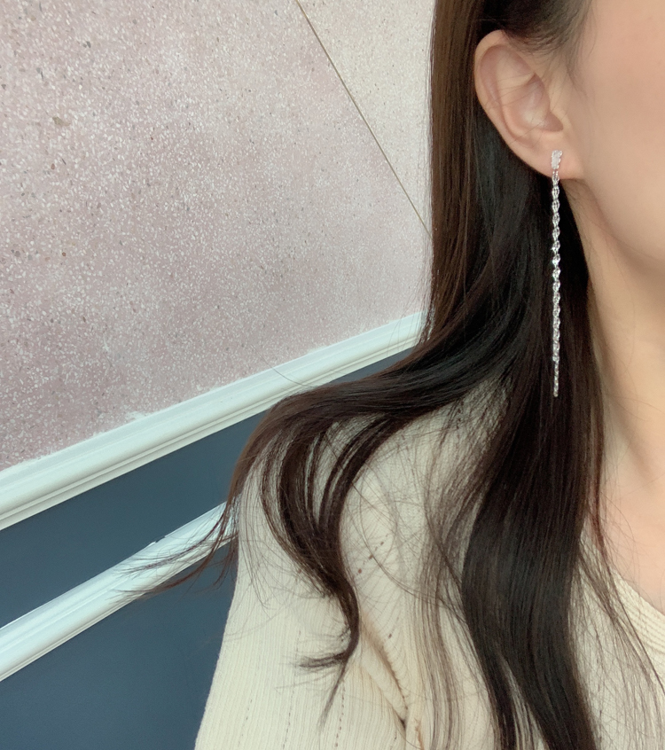 韓國長款精致閃亮流蘇925銀針耳環簡約時尚百搭氣質 顯臉瘦的耳環1入
