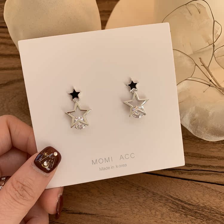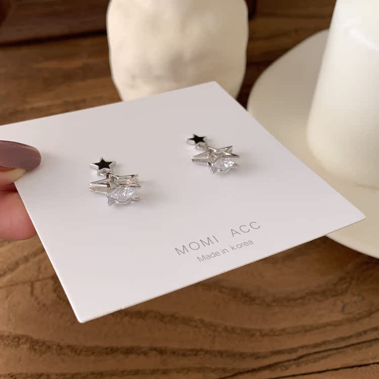 韓國甜美氣質星星水晶耳環925銀針耳釘女金屬風簡約個性設計師1入