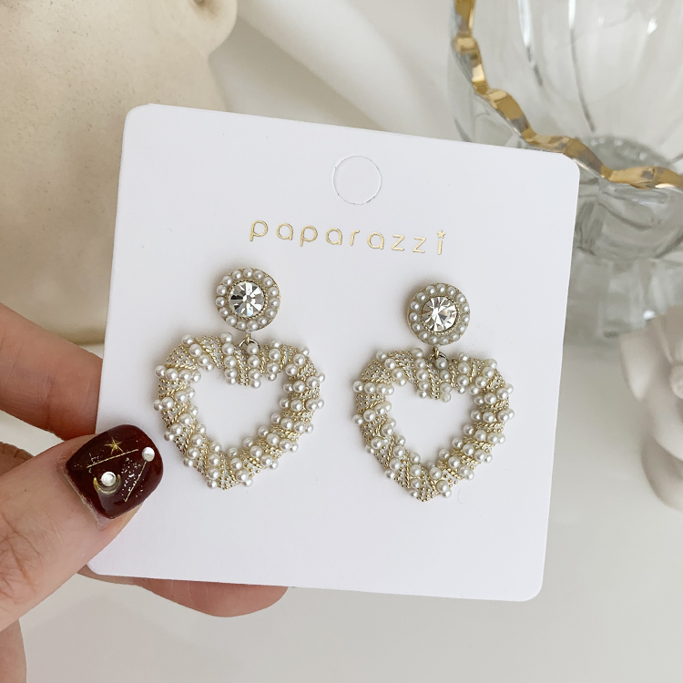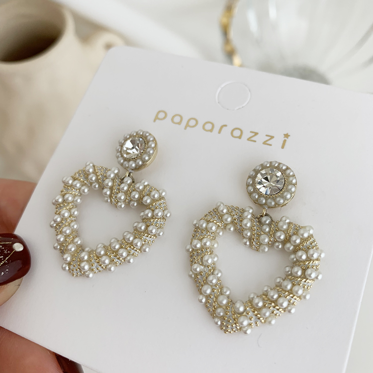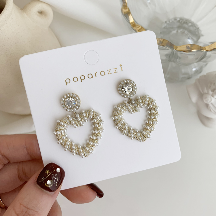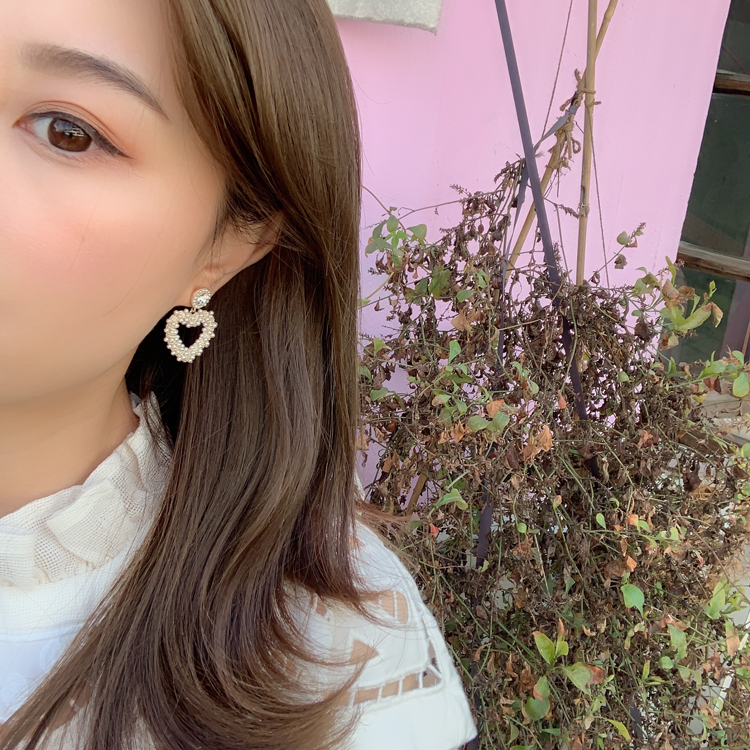韓國東大門甜美少女時尚網紅韓范珍珠鏤空愛心耳墜耳環銀針耳釘1入