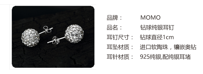 韓版s925純銀耳釘滿鉆奢華鉆球女款簡約防過敏耳飾耳環日韓國1入