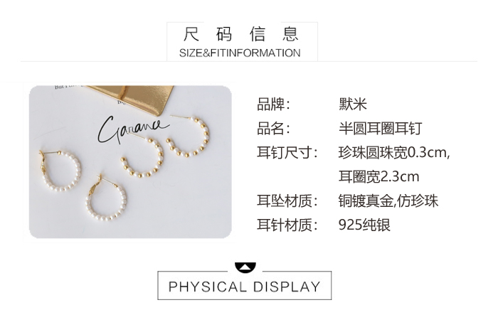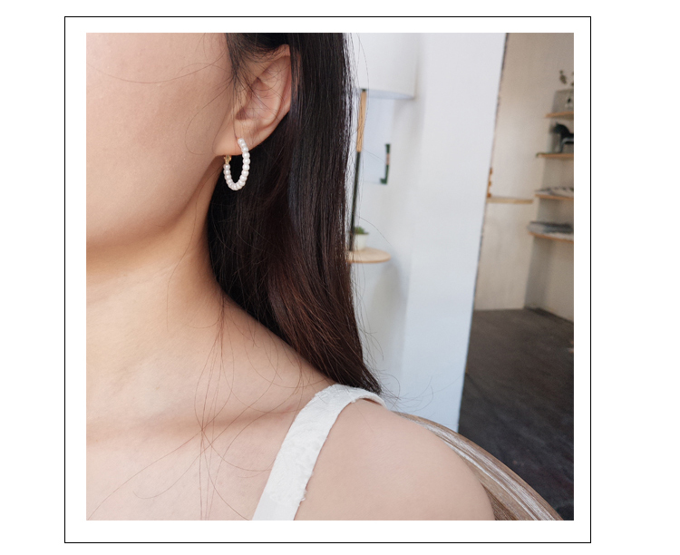 韓國 復古小眾別致網紅個性氣質珍珠耳圈耳環925純銀針耳釘1入