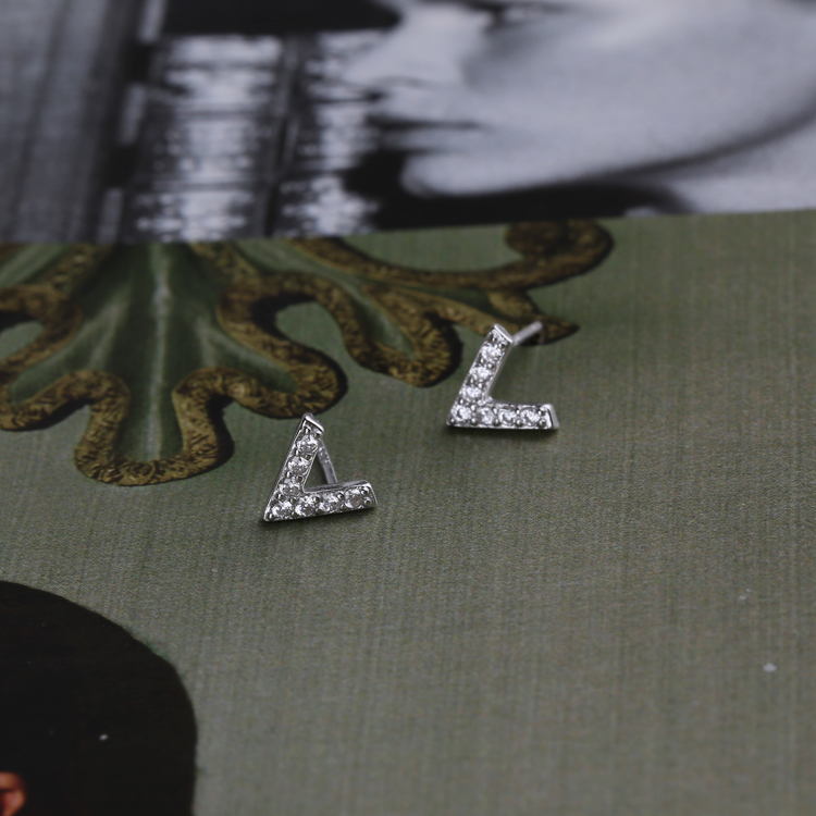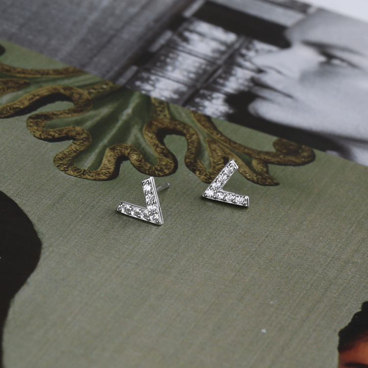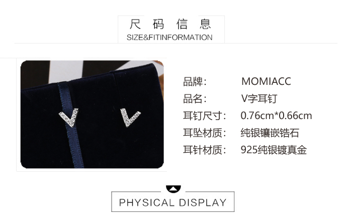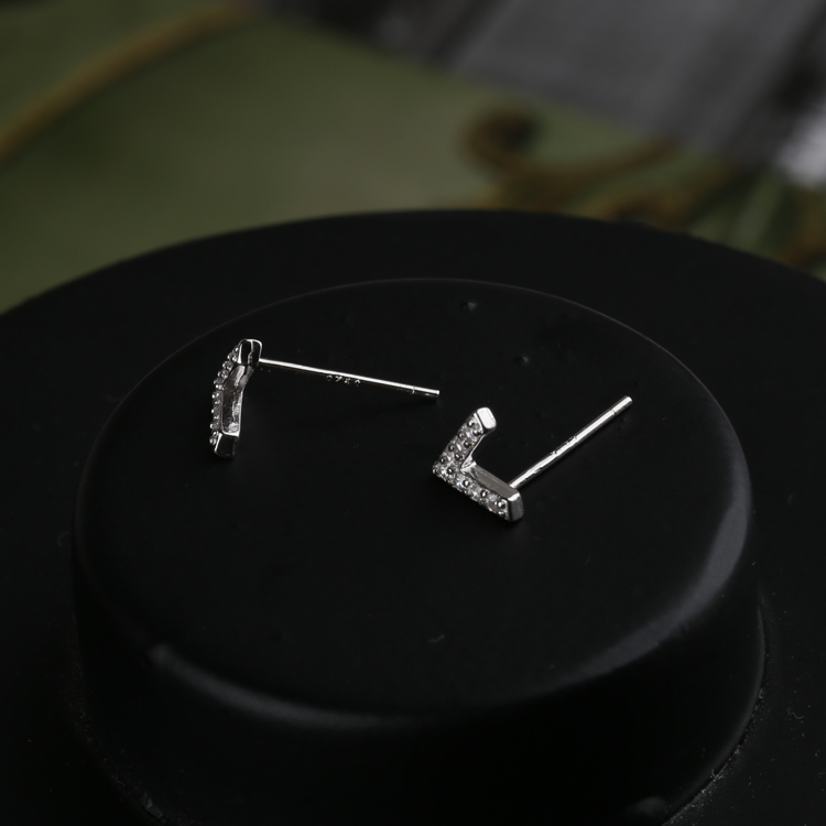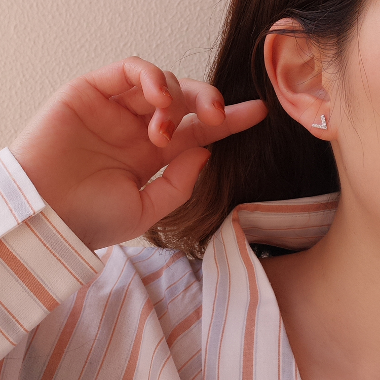 迷你小巧簡約英文字母V造型鑲鉆S925通體純銀耳釘小耳環日韓氣質1入