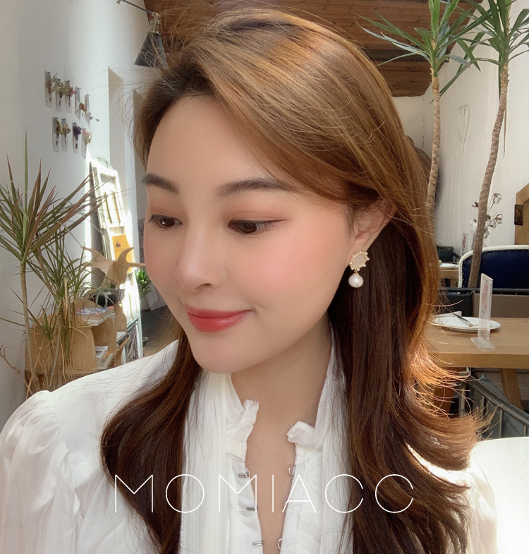 韓國小眾仙氣冷淡風貝殼圓形925銀針耳釘時尚百搭個性耳環氣質女1入