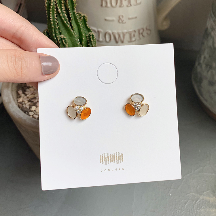 韓國東大門夢幻可愛拼接橢圓幾何簡約百搭小清新925銀針耳釘耳環1入