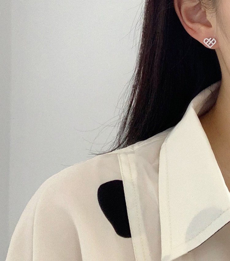 韓國東大門 愛心鏤空鑲鉆小巧通體s925純銀小耳環 睡覺不用摘耳釘1入