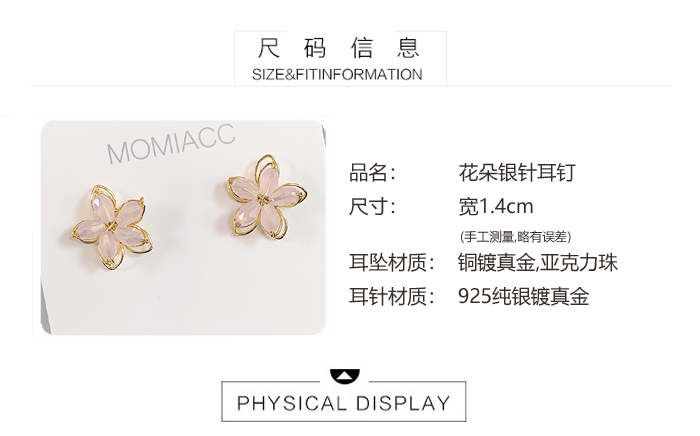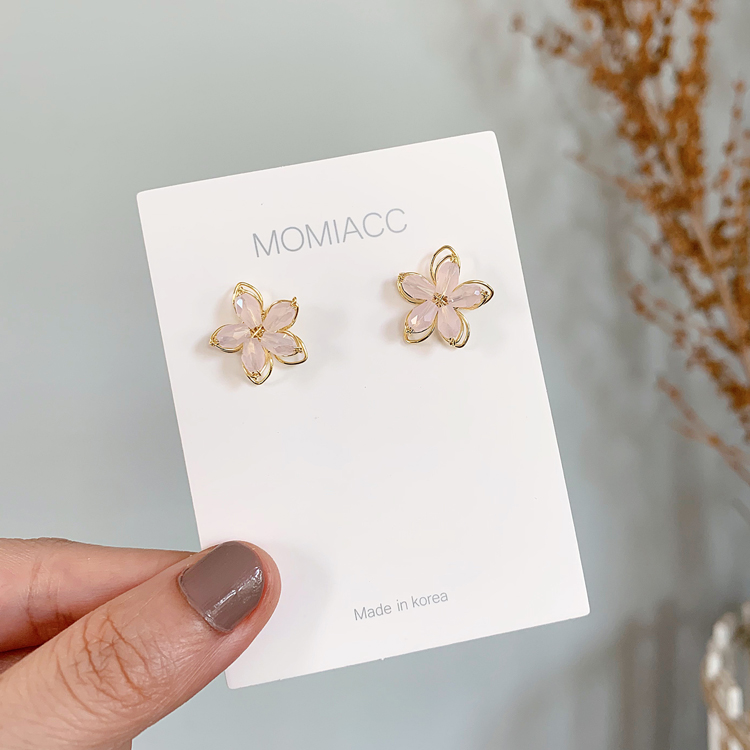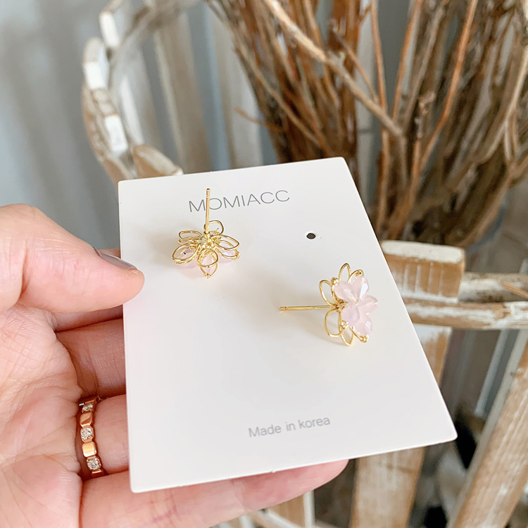韓國 耳飾雙層花朵鏤空小花朵水晶耳環精致小花瓣925銀針小耳釘1入
