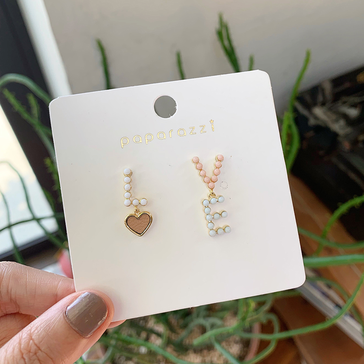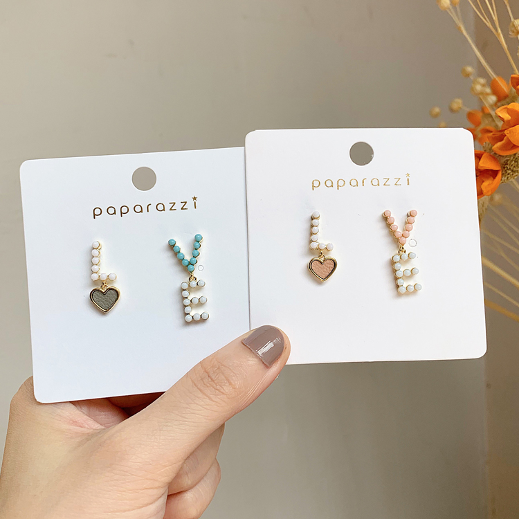 韓國 小愛心字母不對稱925銀針耳環耳飾個性女耳釘網紅同款氣質1入