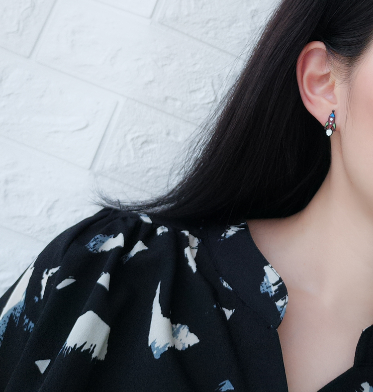 韓國東大門新品 簡約童趣卡通四只星球火箭飛船不對稱925銀針耳釘1入