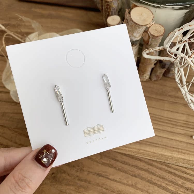 韓國設計感簡約氣質別致鋯石金屬桿耳環925銀針耳釘百搭日常1入