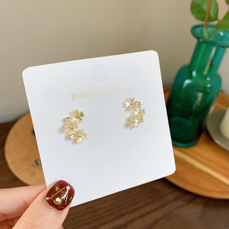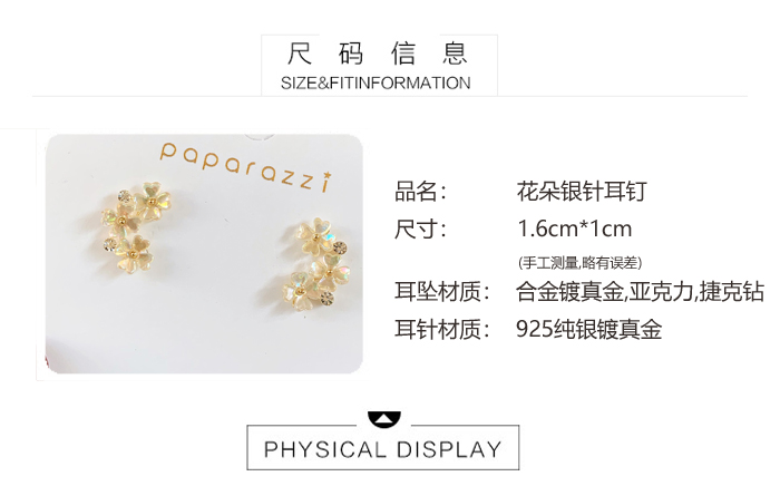 韓國少女花朵鑲鉆氣質簡約銀針耳釘耳環個性甜美時尚新款潮1入