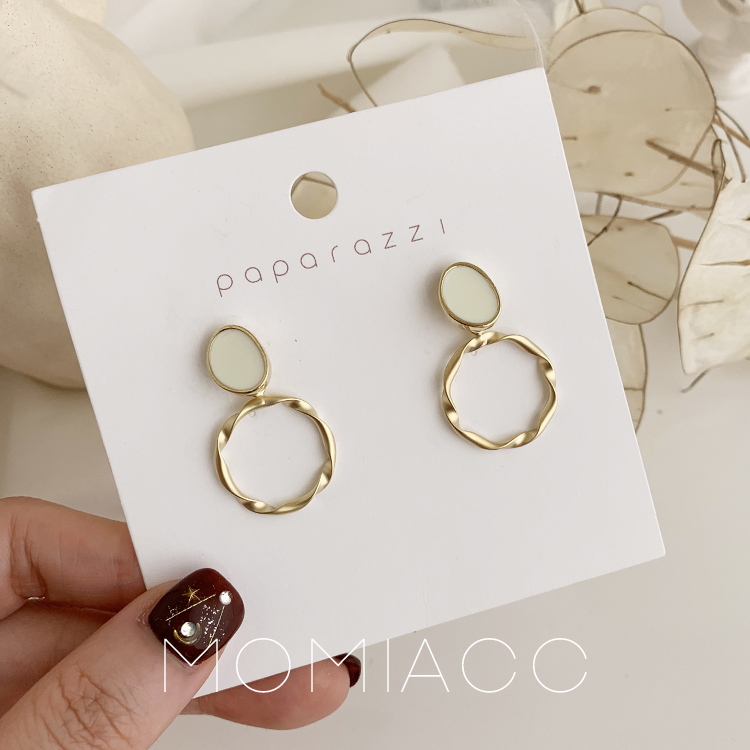 韓國東大門新款氣質簡約滴釉金屬925銀針耳環時尚ins風百搭耳飾女1入