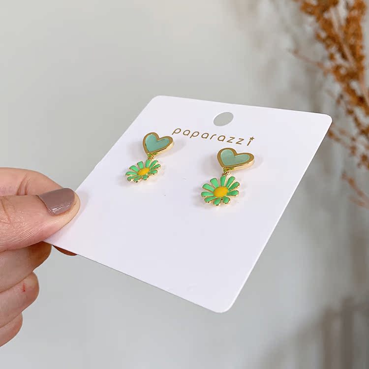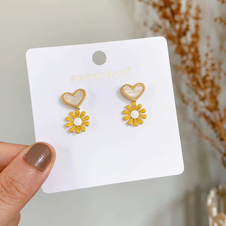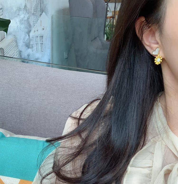 韓國 新款甜美風愛心花朵吊墜耳環少女心百搭S925銀針耳釘耳飾品1入