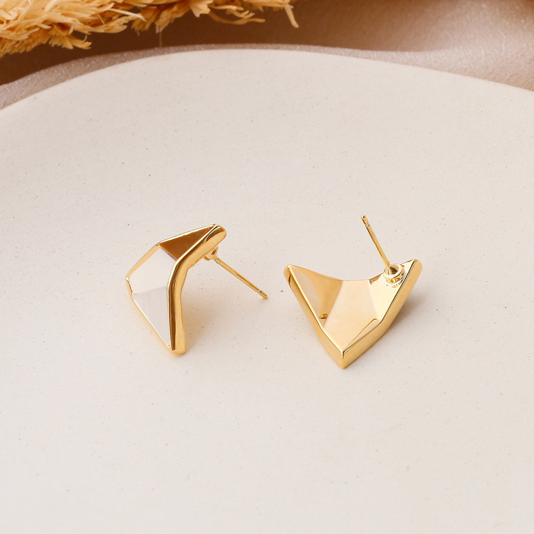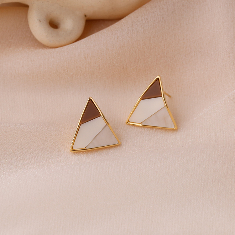 韓國東大門拼接三角形幾何簡約百搭小清新925銀針耳釘氣質個性1入