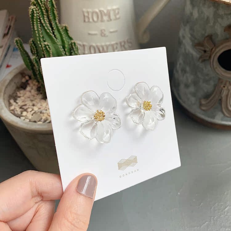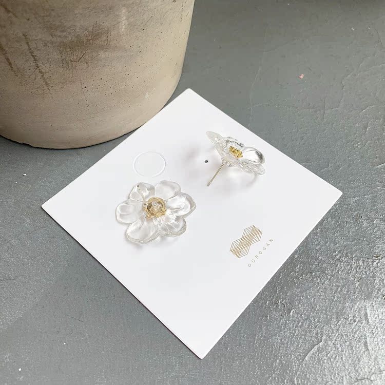 韓國東大門925銀針氣質名媛耳環超仙透明花瓣耳墜防過敏耳釘耳飾1入