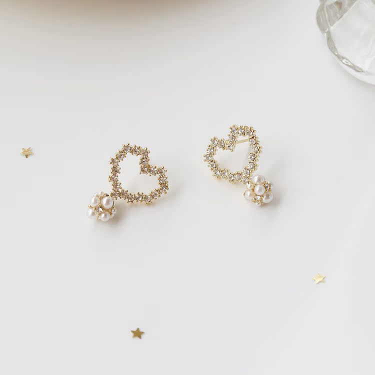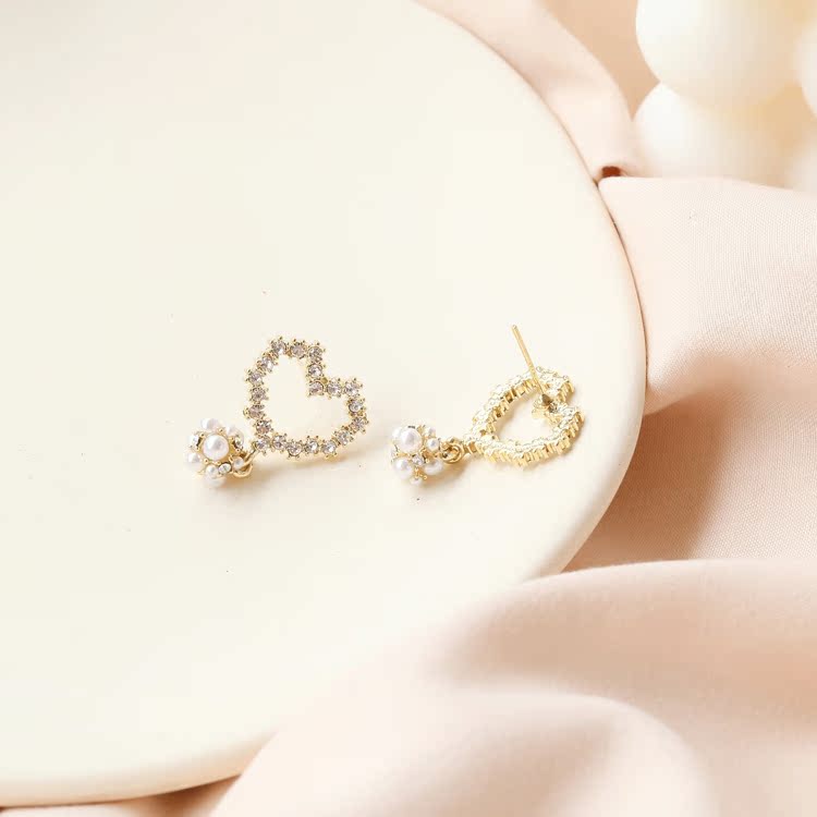 韓國東大門甜美小眾韓范兒個性珍珠花朵亮鉆愛心耳環925銀針耳釘1入