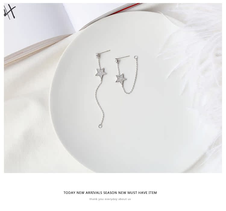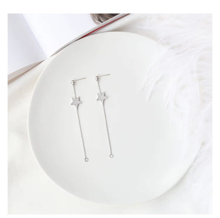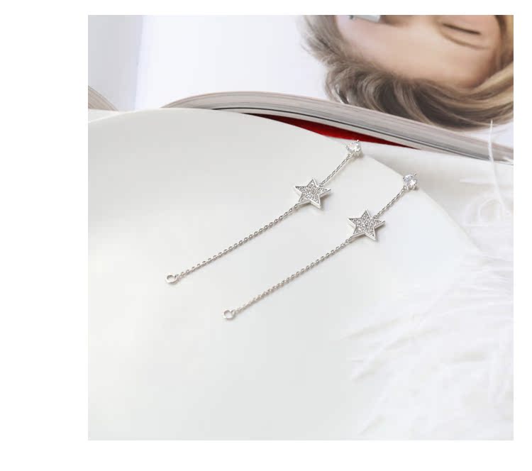 韓國 925銀針耳釘少女鋯石星星搖擺簡約甜美氣質耳環可調節長度1入