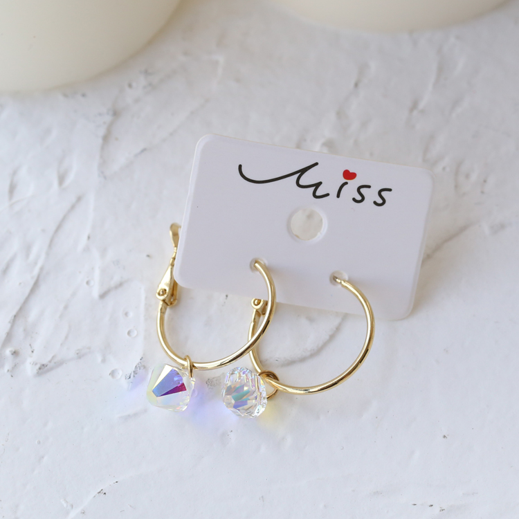 韓國靈動少女換彩色水晶吊墜優雅氣質百搭小耳圈耳環925銀針耳釘1入