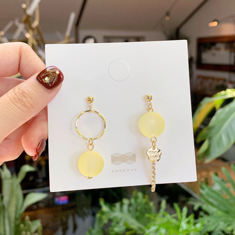 韓國東大門糖果色不對稱銀針耳環簡約氣質百搭時尚耳釘耳墜耳飾品1入