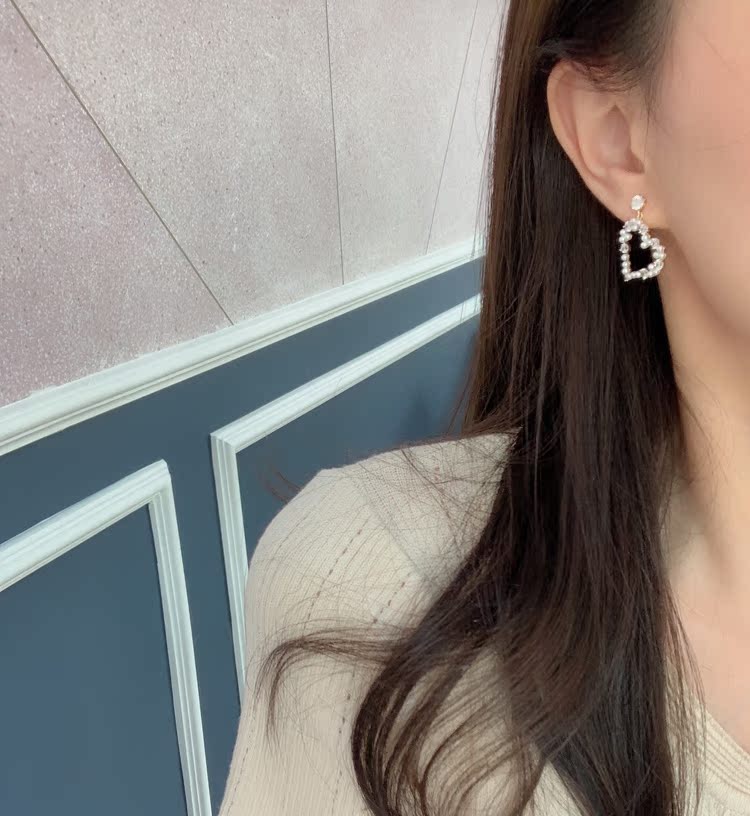 韓國東大門設計師甜美愛心珍珠水晶不對稱少女感耳環925銀針耳釘1入