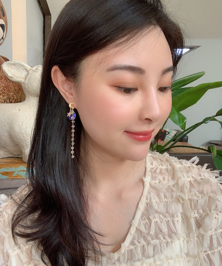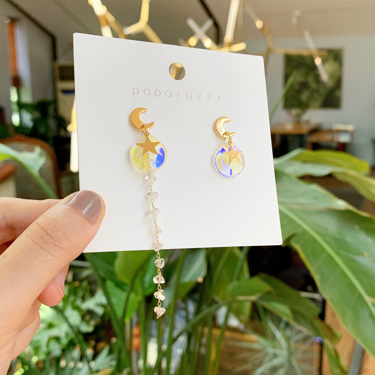 韓國幻夏水晶高級感不對稱銀針耳環女氣質超仙小眾顯瘦優雅耳釘1入