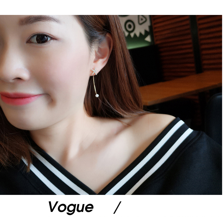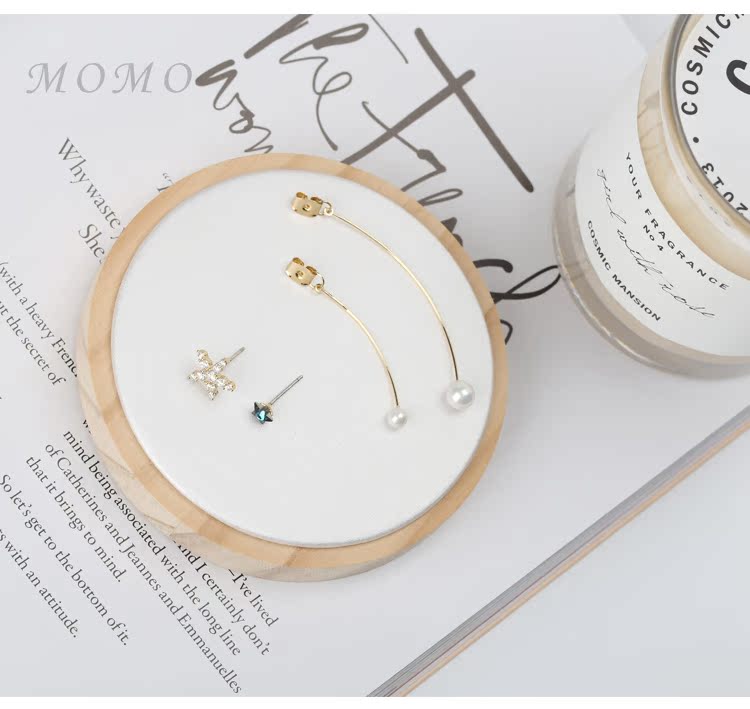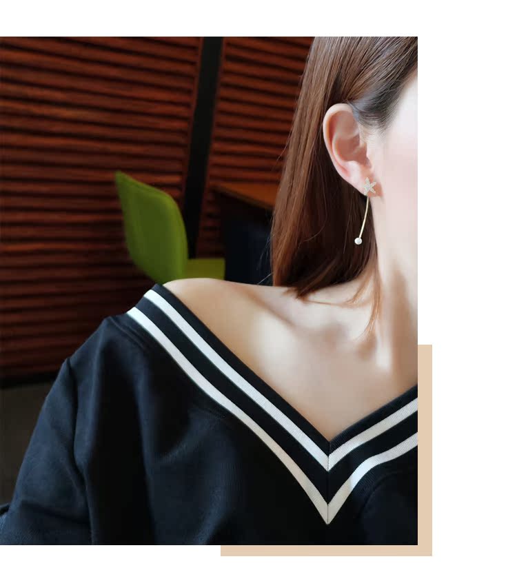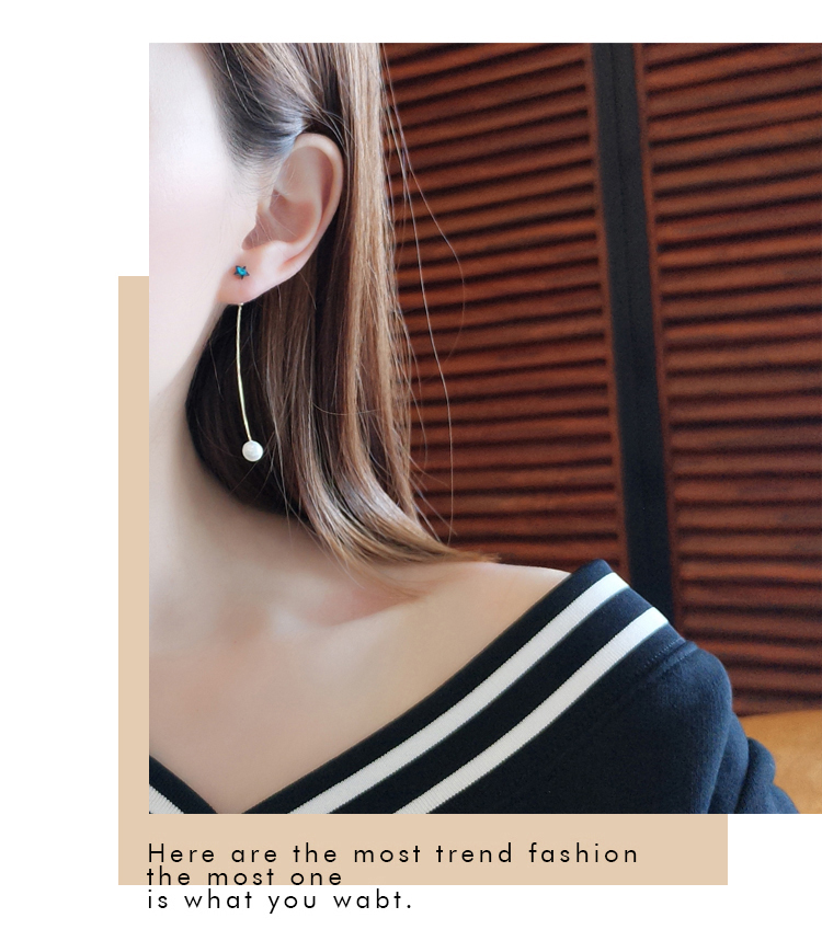 韓國925銀針耳環不對稱水晶星星海星耳吊墜長款氣質耳飾品耳釘女1入