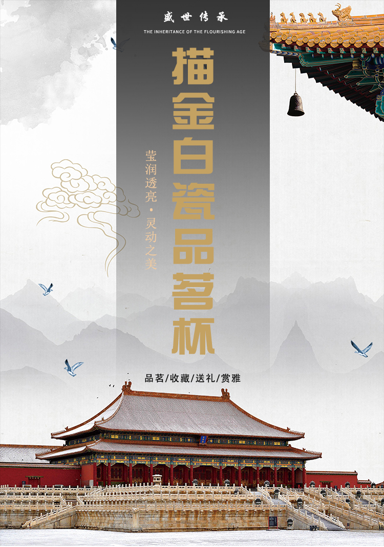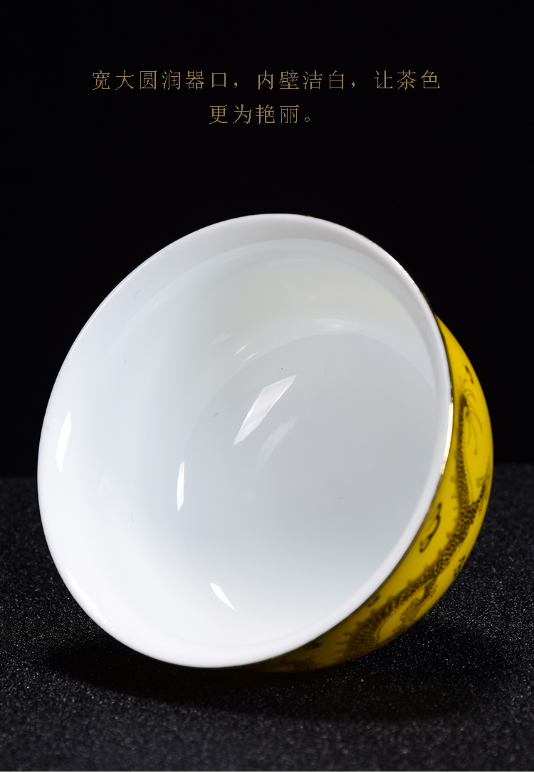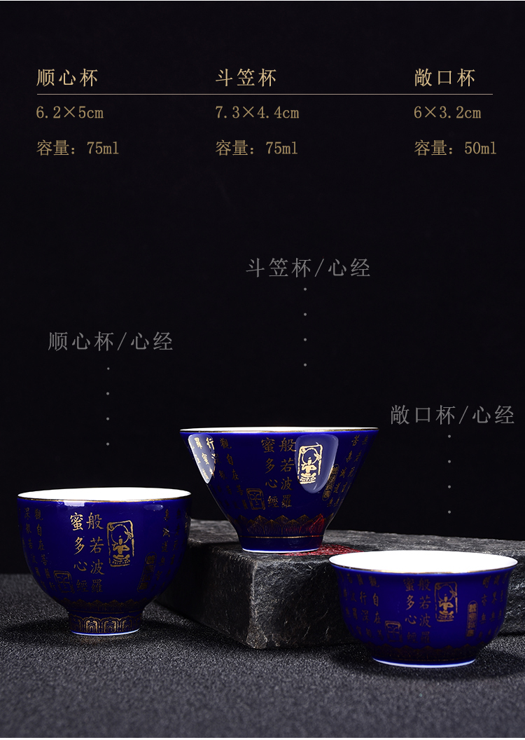 霽藍釉重工描金茶杯單杯功夫主人杯陶瓷品茗杯景德鎮心經主人杯1入