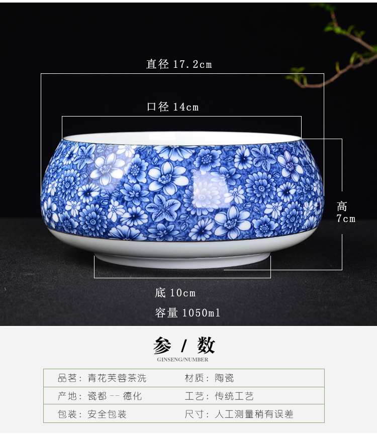 陶生活陶瓷茶洗茶碗建水茶杯碗杯洗茶盅茶缽大水盂青花瓷茶洗大號1入