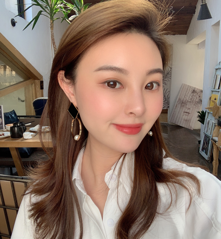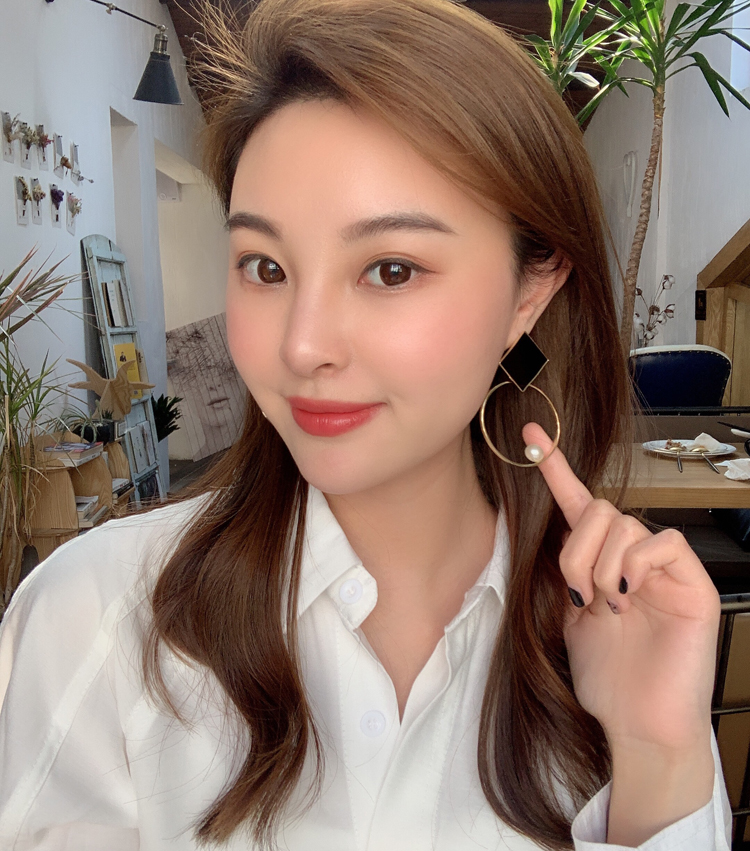 韓國東大門小眾博主時尚冷淡風珍珠幾何方形圓形夸張耳釘銀針耳環1入
