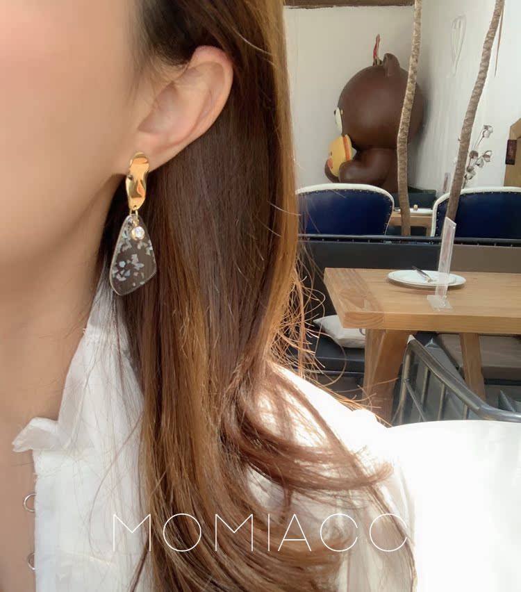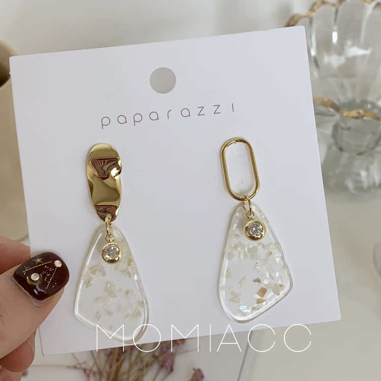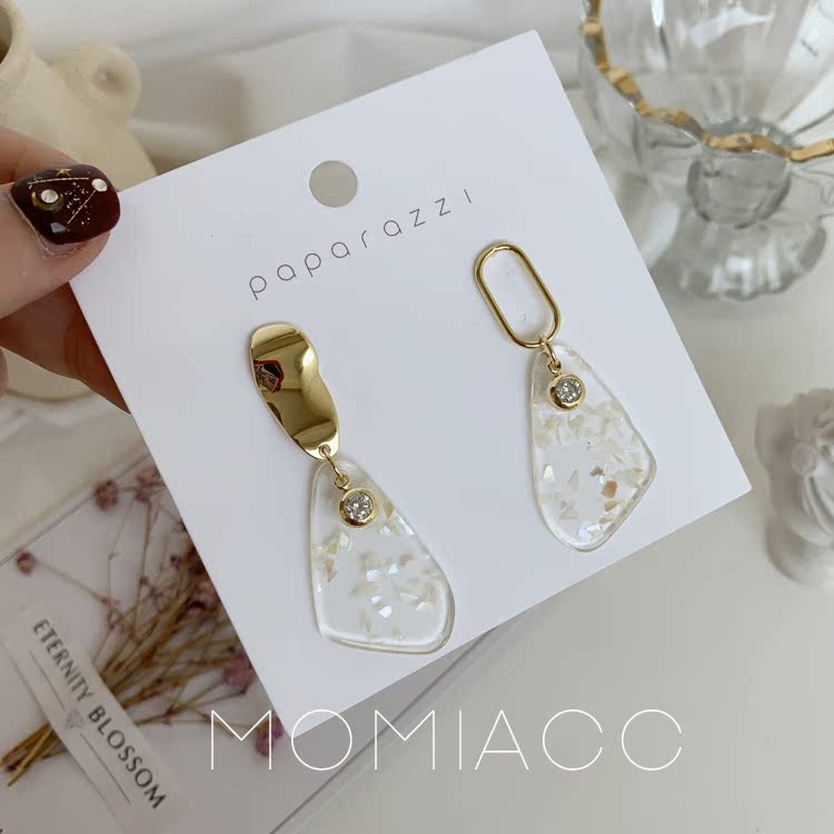 韓國東大門時尚別致貝殼碎片亞克力不規則金屬亮鉆耳飾銀針耳環1入