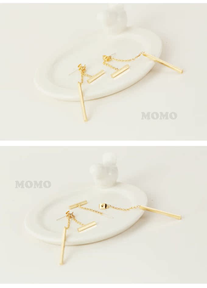 韓國 簡約氣質百搭歐美風金屬長款925純銀針耳釘女 耳環耳飾耳墜1入
