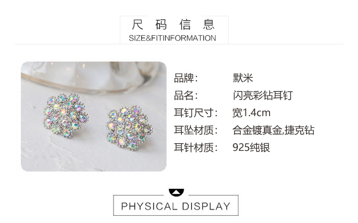 超閃亮氣質簡約925純銀針耳釘耳飾品女百搭閨禮物日韓版個性時尚1入